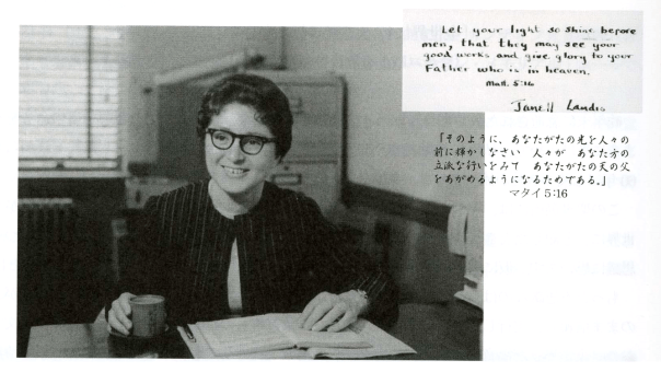 We are saddened to report that on March 24, 2020, Janell Landis passed away peacefully in her sleep. She was 93 year old. It has been our great honor and pleasure to have known Janell (or Jan, as she liked to be called by friends) and to have been able to spend the time we did learning about her journey building bridges between people in Japan and the United States. She was always full of wonder and joy, and sought to bring that happiness to others. Today we are glad to be able to share a piece of writing on Janell’s life in her own voice: an essay in which she reflects on her early path to Japan and her experiences at Miyagi Gakuin Women’s University. She will be greatly missed, and we hope to honor her memory by seeing this project to its completion.