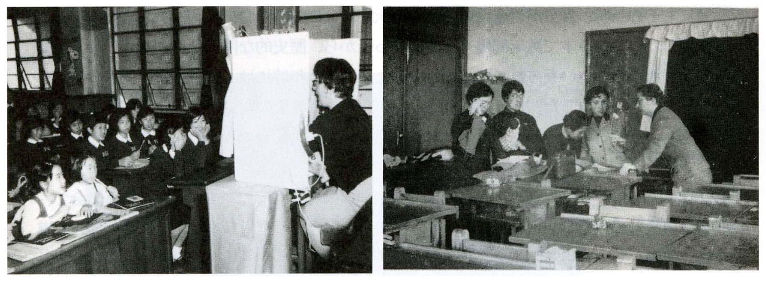 When I came to Japan in March of 1953, it was right as the Occupation ended in 1952, and I had set foot into an atmosphere of openness and acceptance. The middle school and junior college I was in charge of longed for fellowship and for the opportunity to improve their English. The success of the Sendai Student Center, established by the first J-3 missionaries who had come to Japan in the late 1940s, was because the students of national universities desired broad social lives as well as meaningful lives and practical abilities in English . Through English conversation, puppet shows, folk dance, and daily group classes, I was able to make meaningful connections with young people at Christian universities, non-religious universities, and various schools. Under the guidance of Jeffrey Mensendiek, the Student Center still exists today, and there one can not only learn about social issues, discrimination, and injustice, but one can visit with other neighbors from Asia, such as those from Thailand, Nepal, and India. He is the only missionary in Sendai from the United Church Board for World Ministries (UCBWM). (As of 2010, he and his sister Martha, who lives in Kyoto, became the only 2 people from UCBWM in Japan.)