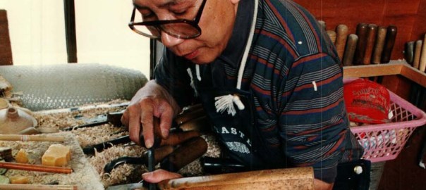 Hiroi: I think it would be really good if they were popular. It’s regrettable that in Japan there’s not a system for that. Like I said before, if important people would take note of us artisans, wouldn’t a bit more traditional things and skills survive? And young people becoming artisans–you know there’s quite a lot of young people who want to become artisans But the world of artisans is difficult. And artisans are quite stubborn. And people are scared of that popular image, that they can’t get used to that [sort of life]. Heh heh heh. there are quite a lot of people who say “I really want to do that…” So I thought [it would be good if] it was easier for those people to become accustomed to it. I thought [to myself] “I want to teach them.” Umm… last year, a year and a half ago, in Sendai, our Craft Village, we wanted to do successor training, so the city gave us money. And five young people came.