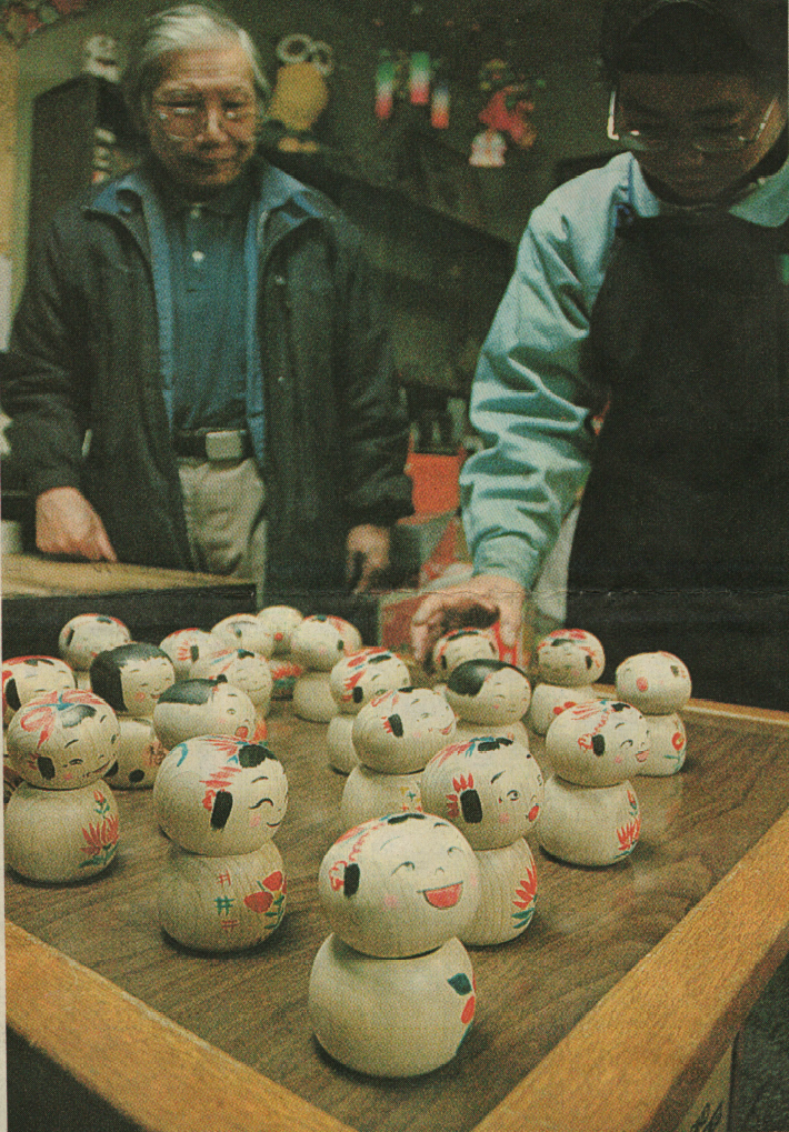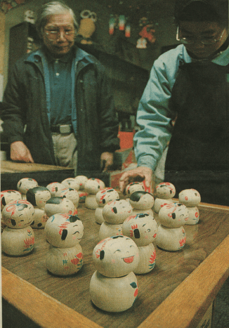Hiroi:    Mm, that was the only thing to do. Somehow I sold the tops. Like in the past, I thought I might not be able to eat, and in Sendai, just like back then, I wasn’t understood, and I couldn’t sell anything. And I went to Tokyo and it was a situation like I just described, and so I was able to sell my tops there. Though, at that time, rather than Edo tops I actually was working hardest at making the traditional kokeshi.