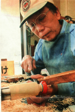 Hiroi’s wife, listening to us nearby, says, “When we have an order deadline approaching he procrastinates. Then when he starts, he’ll skip meals and stay up turning the lathe late into the night. If he’s even a little unsatisfied with the result, he’ll just toss it out.” Because these tops now are being gifted to an orphanage , Hiroi-san has stopped tossing out ones he doesn’t like.