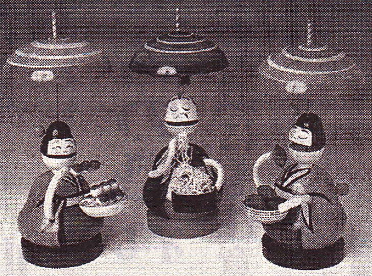 And if you [place] the tops onto each other again, they spin well together, and it looks like he’s going, “Yes, honey, have good evening!” and goofing around. There are also tops that are specifically meant for gambling, and these are often called by the kanji for koma. In an age of parody, when these tops are spun, it’s for the enjoyment of adults.